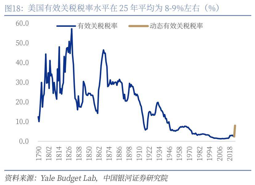 当前美国对华的最新关税税率为28.93%,较2025年末约降低2.3个百分点。特朗普政府此前依据IEEPA征收的关税包括对所有国家征收的10%基线%以上对各国征收的“对等关税”、对中国、加拿大和墨西哥等征收的“芬太尼”关税等。截止2025年11月10日美国将芬太尼关税从20%降至10%,我们测算美国对华的关税税率为31.24%。此次IEEPA关税被推翻后,我们测算美国对华关税率为13.93%,若考虑122条款对全球商品加征15%的进口关税,对华的最新关税税率则为28.93%,较2025年末约降低2.3个百分点。IEEPA关税违宪失效、15%的122关税生效后,美国对全球的实际平均综合关税水平约升至9.5%-10.5%左右。
