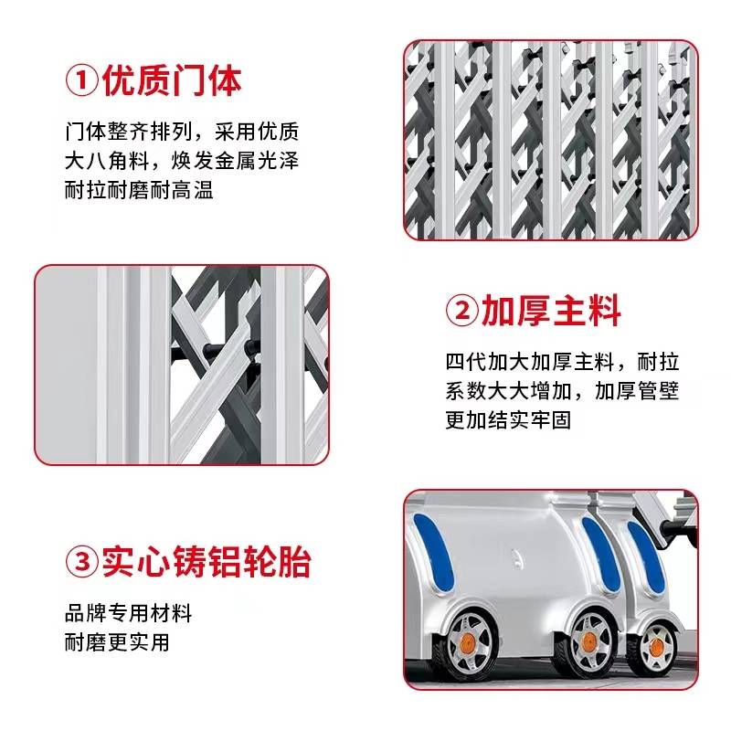 材质也是决定电动伸缩门价格的重要因素之一。常见的材质包括铝合金、不锈钢和玻璃等。铝合金门通常价格较低,但也容易受到外界环境的影响,如氧化和腐蚀。不锈钢门则价格较高,但具有更好的耐久性和抗腐蚀性能。而玻璃门则价格相对较高,但可以增加门的美观度和采光性能。在选择材质时,消费者应根据自己的需求和预算做出合理的选择。