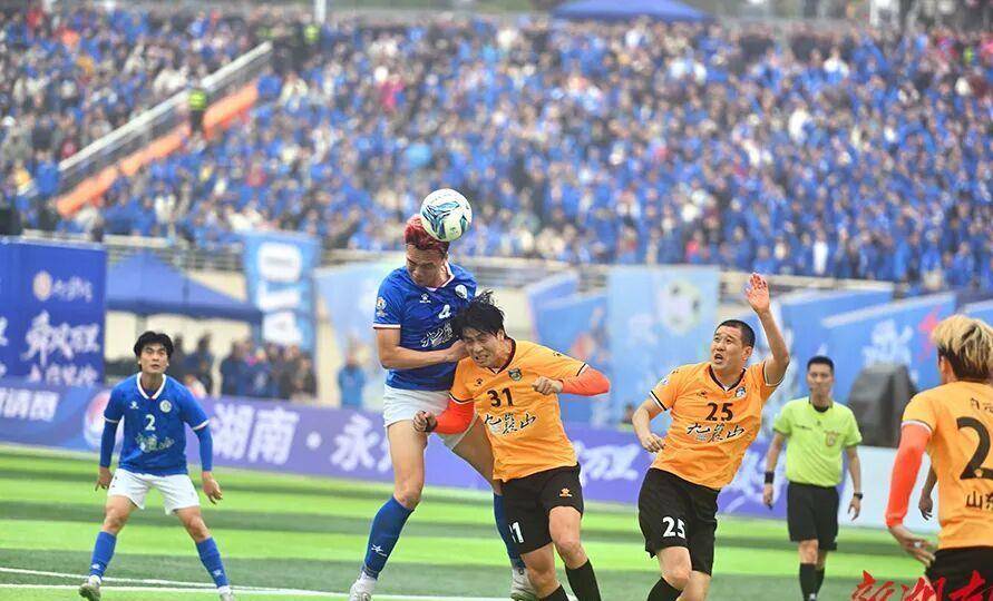 这场比赛背后故事不少。永州队是去年湘超联赛的冠军,山东泰安队更猛,是“齐鲁超”和“齐鲁球王争霸赛”的双料冠军。山东队里头还有前国脚荣昊呢。所以这根本不是你想的那种“野球”,水平高着呢。