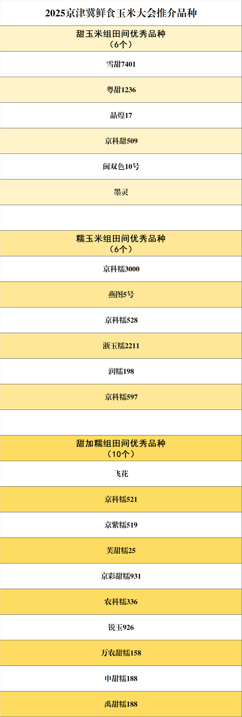 7月,第三十二届中国北京种业大会系列活动2025京津冀鲜食玉米产业发展大会暨第十一届北京鲜食玉米节在北京市举办。获奖品种榜单具体信息如下: