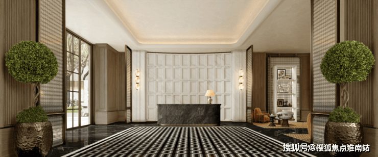 电梯厅的宠物识别按钮是艺术家定制款;入户门把手出自艺术家刘建华之手,用整块实心铜锭经锻造、打磨、电镀等多道精密工艺制成,握住的瞬间就是与艺术的触碰。