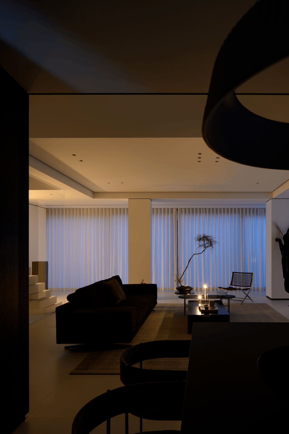 楼梯区完全被几何占据,自然光恰到好处的平衡,进一步呼应着空间的心境,衔接了生活和居所。