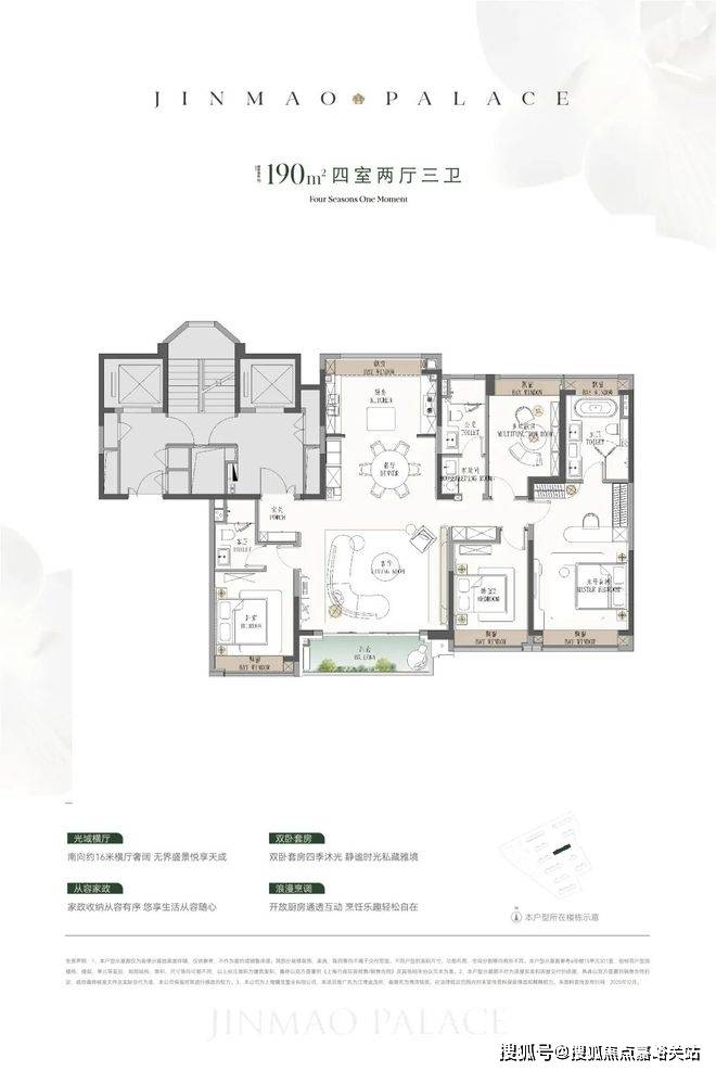 ● 建面约190㎡4房:楼王位置的顶奢大平层,同价位段在杨浦只能买到约120㎡3房!