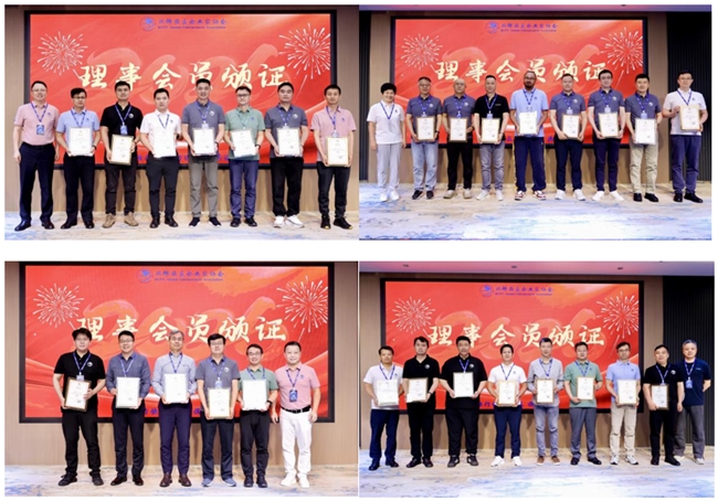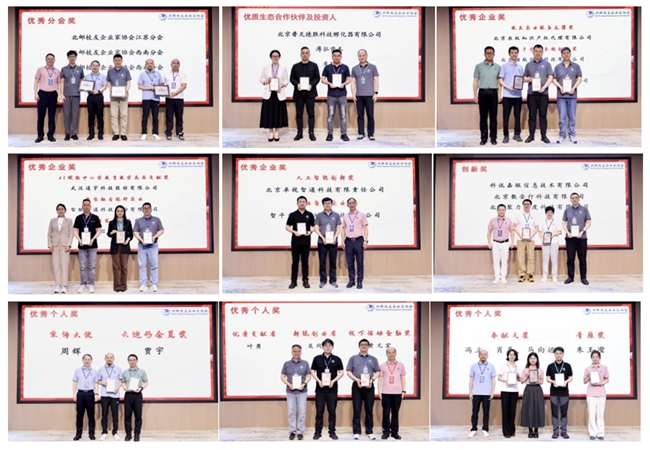 随后,为20余位新任理事颁证,并表彰了在AI创新、企业发展、校友服务中表现突出的企业及个人。