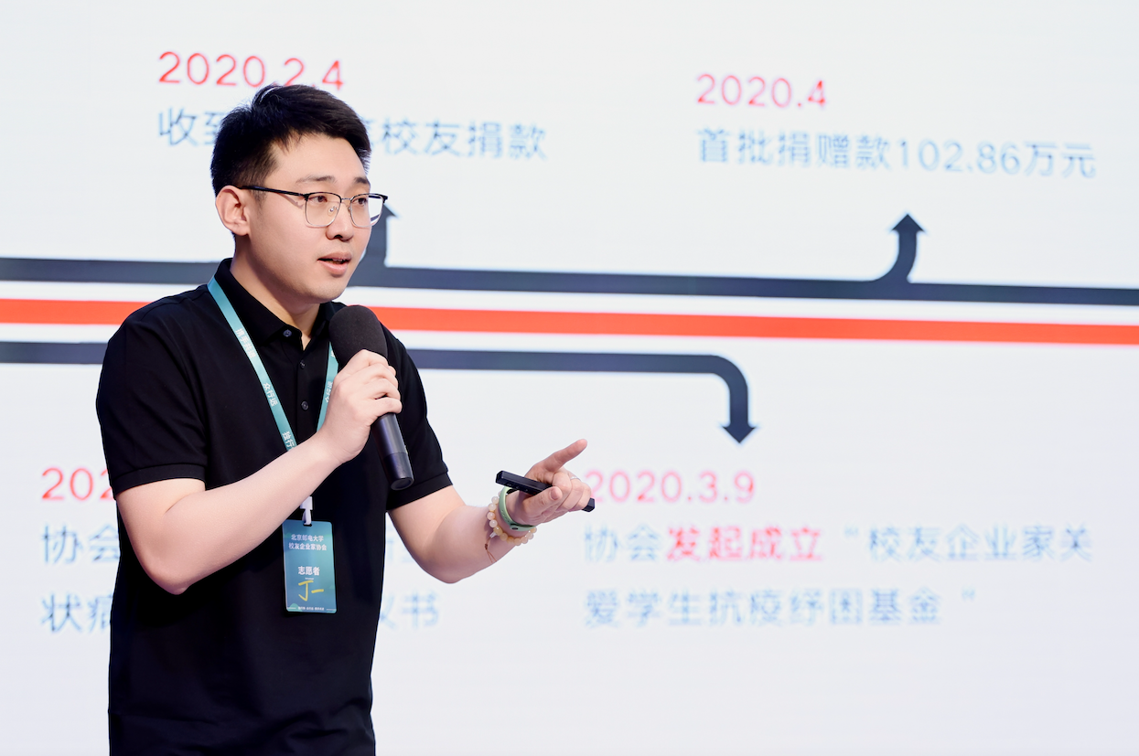 秘书长胡晓鹏围绕组织架构、会员规模、品牌建设等方面的工作情况向大会作了2025年度工作总结和2026年工作展望,副秘书长于丁一作学生纾困关爱基金使用情况的汇报。该基金由校友企业家协会发起成立,主要用于北京邮电大学在读学生罹患重大疾病等事件的救助或资助,已为近300名学子提供定向援助,彰显了北邮人的温情与担当。
