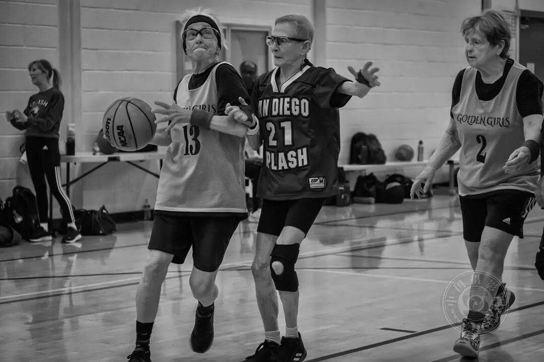 圣地亚哥老年女子篮球协会成立已有25余年,是美国规模最大的50岁以上女性篮球联盟。其中两支球队的球员年龄均超过80岁:圣地亚哥飞溅队,以及新晋球队金女郎队。她们中的许多人成长于一个体育运动被认为不符合女性气质的年代,女性(尤其是非裔美国女性)的运动机会极为稀少。1972年颁布的一项法律改变了有组织的体育赛事,但对她们而言为时已晚。如今,她们只为能参与集体篮球运动而高兴。如今,这个联赛的意义早已超越运动本身。它促进积极老龄化,维系友谊,凝聚社区力量。