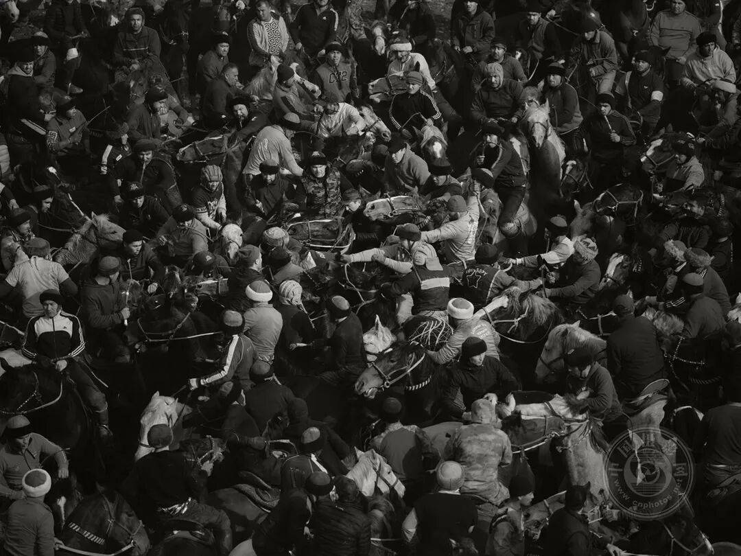 一场马背叼羊赛事的参赛骑手可达100至400人,比赛持续4到5小时。数百名骑手蜂拥争抢无头羊尸,场面宛如拿破仑时代的战争油画。不过在比赛过程中,那只羊几乎难以看见,它被尘土、人马与数百只马蹄完全遮蔽。