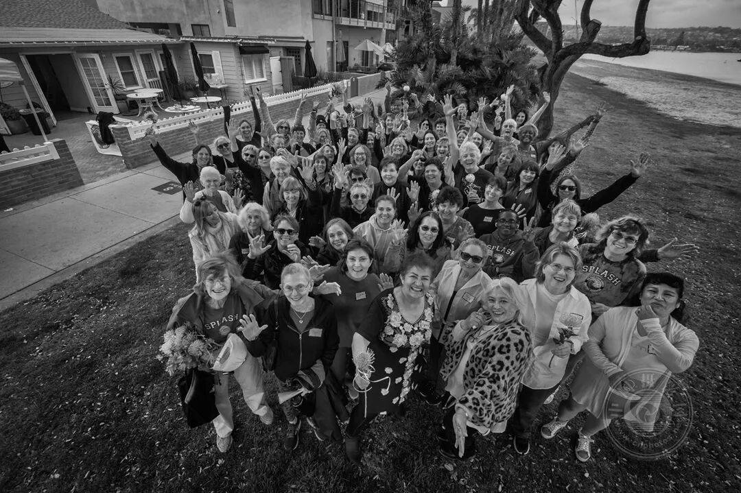 在米申海滩女子俱乐部举行的年会上,圣地亚哥老年女子篮球协会(SWBA)成员合影留念。该协会为非营利组织,旨在通过篮球运动,帮助50岁以上女性实现安全、积极的老龄化生活。